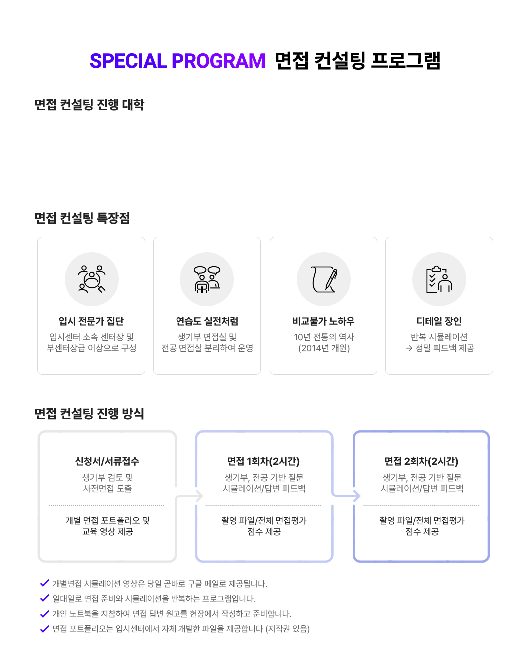 * 개별 요청사항 : 교과목 학습법, 교과학습활동 확장(동아리,진로,탐구)과 다영역 연계 방향, 진로 매칭 상담, 전공탐색, 관심학교(일반,특수대) 입시 동향 등